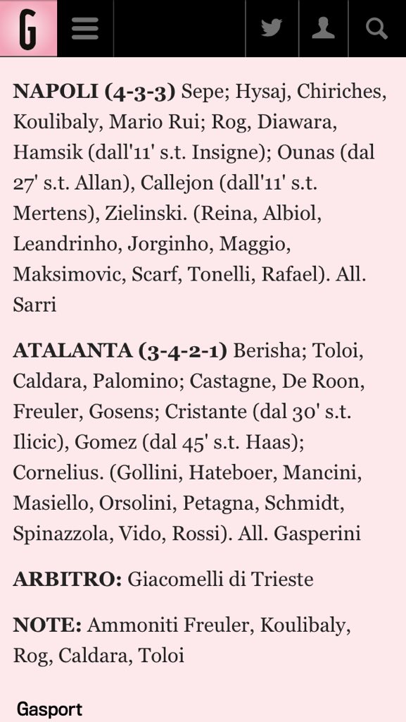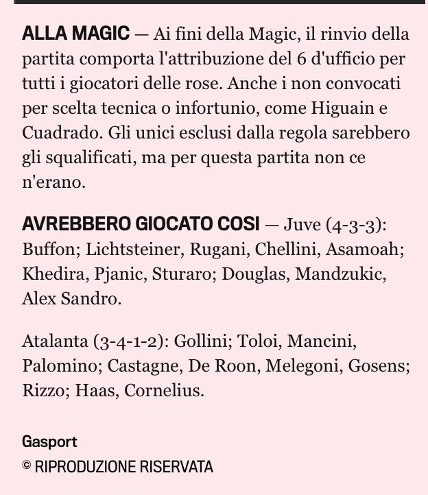Il giornalista di Canale 21 Umberto Chiariello tramite un messaggio su Twitter si è espresso in merito al largo turnover che l’Atalanta aveva deciso di fare domenica scorsa contro la Juventus, gara poi rinviata per la forte nevicata abbattutasi su Torino.