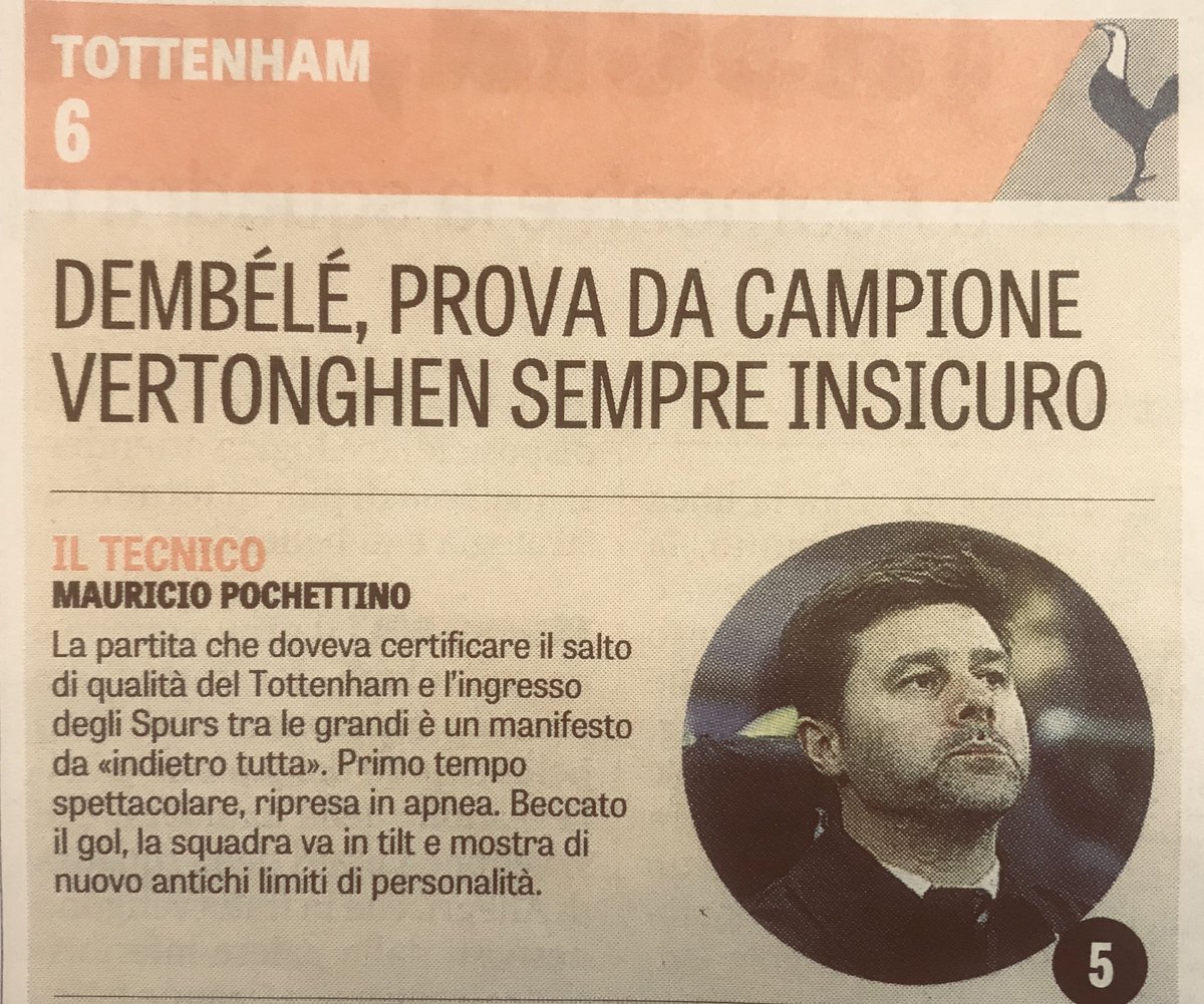“E non solo. Sono un’offesa anche a chi lavora onestamente”. La Gazzetta dello Sport, in particolare, ha giudicato con un 6 il tecnico del Tottenham Pochettino. Massimiliano Allegri, invece, trainer della Juventus, è stato premiato con un sette in pagella.