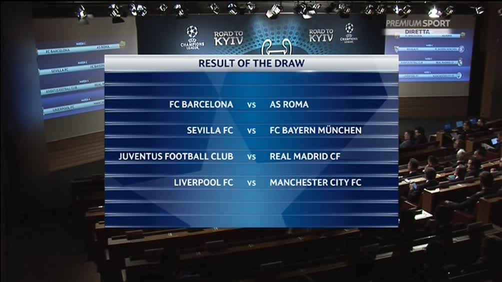 Il sorteggio dei quarti di finale di Champions League che si è tenuto a Nyon, nella sede Uefa, a partire dalle 12, non è stato sicuramente benevolo per le compagini italiane. Gli accoppiamenti, lo ricordiamo, erano liberi: non erano previsti vincoli legati alla nazione di provenienza dei club. La Roma affronterà il Barcellona, la Juventus il Real Madrid.