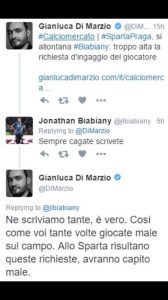 Di questi tempi, laddove anche il calciomercato prende spazio sui social, che un calciatore risponda ad un commento di un giornalista e scoppia un botta e risposta piuttosto piccato. Jonathan Biabany, attaccante dell’Inter, infatti ha risposto in maniera dura a Gianluca Di Marzio, esperto di calciomercato di Sky Sport che aveva twittato del rifiuto dello Sparta Praga che riteneva l’ingaggio di 2 milioni di euro esosa.