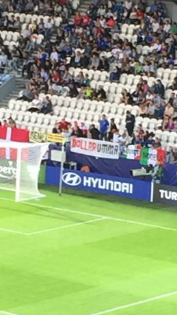 Non è un momento facile per Gigio Donnarumma che dopo la sua scelta di non voler rinnovare con il Milan è stato preso di mira un po’ da tutto il mondo calcistico e non solo dai tifosi rossoneri. Durante la sfida Under 21 in Polonia, tra Italia e Danimarca valida per l’Europeo, è apparso, dapprima, uno striscione “Dollarumma”: