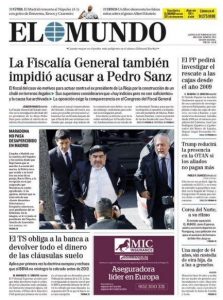 Tanto Napoli anche sulla prima pagina di El Mundo, quotidiano generalista spagnolo. Stavolta però non si parla del gioco espresso dalla squadra di Sarri, ma di Diego Maradona. “Maradona non passa inosservato a Madrid” è il titolo della prima pagina del quotidiano che ripercorre la giornata del più grande di sempre tra visite della polizia in albergo, e il suo nuovo ruolo di ambasciatore. Ecco la foto: