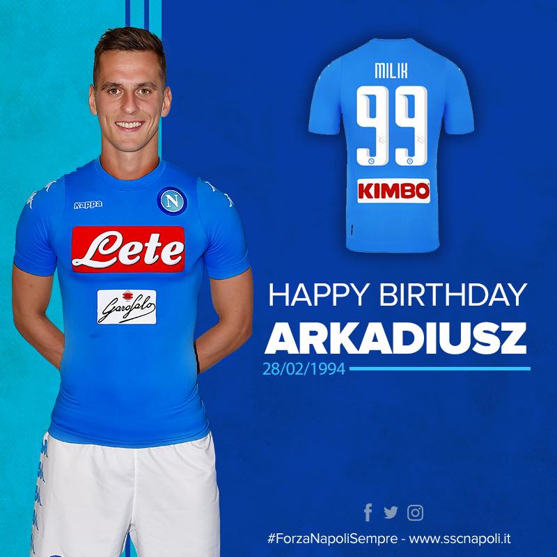 Giornata speciale per Arek Milik, che festeggia oggi il primo compleanno in maglia azzurra. Il Napoli ha postato una bella immagine con gli auguri sui suoi profili social.
