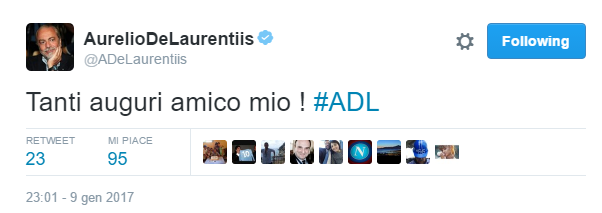 In mattinata è arrivato anche il messaggio del presidente De Laurentiis, che attraverso Twitter ha scritto: “Tanti auguri amico mio!”. Chiaro il riferimento al tecnico azzurro.