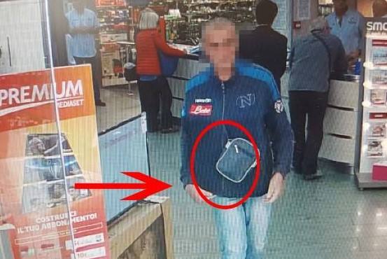 Nell’immagine si nota un uomo che, disinvolto, usa la tuta del Napoli per nascondere la refurtiva. La foto, naturalmente, ha fatto il giro del web.