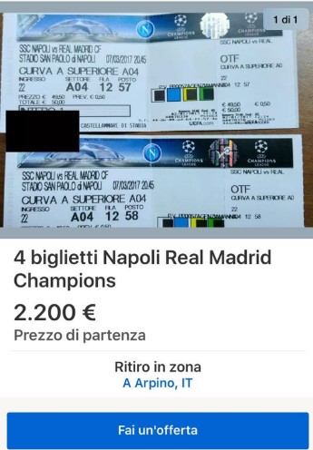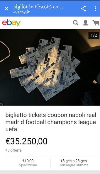 “E’ un caso squallido e vergognoso, accade spesso in ambito musicale, ma in tali termini non avevamo mai visto una cosa simile”. Corre sul web il disgusto per il caso “bigliettopoli” riguardate Napoli-Real Madrid: biglietti polverizzati in 6 ore, al San Paolo ci sarà il tutto esaurito. I dati sono chiari, ma purtroppo il fenomeno del secondary ticketing, ovvero del bagarinaggio virtuale, non consente di avere certezze. Tanti, infatti, sono coloro che, in un modo o in un altro (a riguardo stanno indagando la Guardia di Finanza e la Polizia Postale) sono riusciti a comprare tanti tagliandi e poi li stanno rivendendo attraverso social ed altre piattaforme. Intanto alcuni si chiedono come sia possibile visto che i biglietti sono nominali.