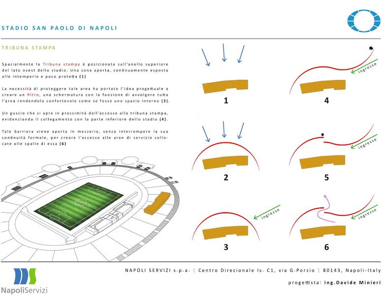 Questa mattina a Palazzo San Giacomo, in seno alla conferenza stampa indetta dal Comune di Napoli, è stato svelato il crono-programma dei lavori di ristrutturazione del San Paolo: il sindaco De Magistris e l’assessore Borriello hanno mostrato anche alcuni pannelli col risultato finale dei lavori. Importanti novità per gli spogliatoi, l’accoglienza delle squadre, e soprattutto il sottopassaggio che porta al terreno di gioco. Anche la tribuna stampa “Carlo Iuliano” avrà un volto nuovo.