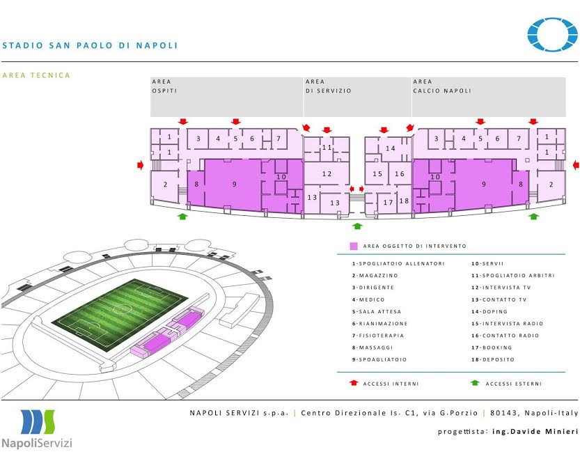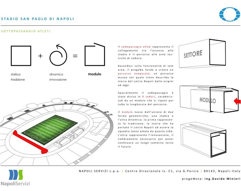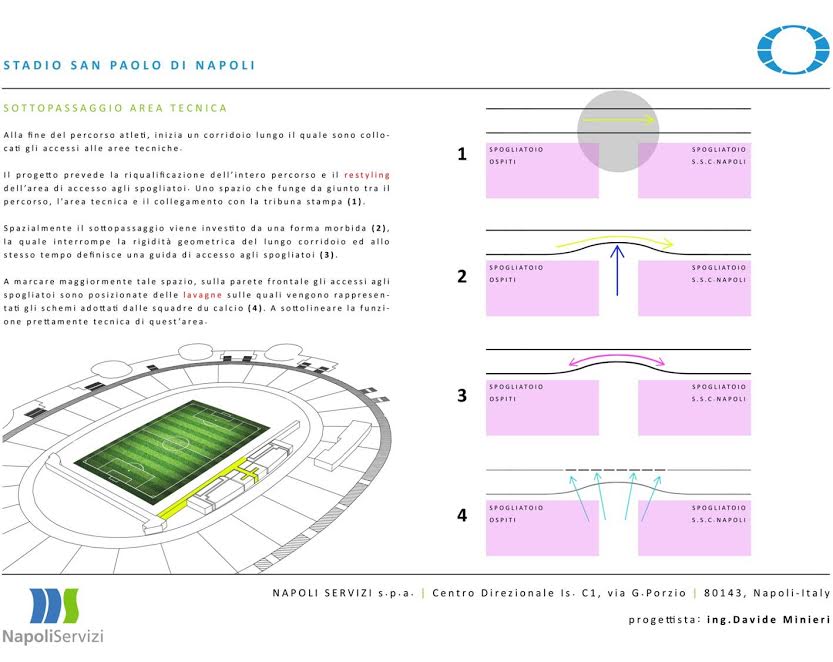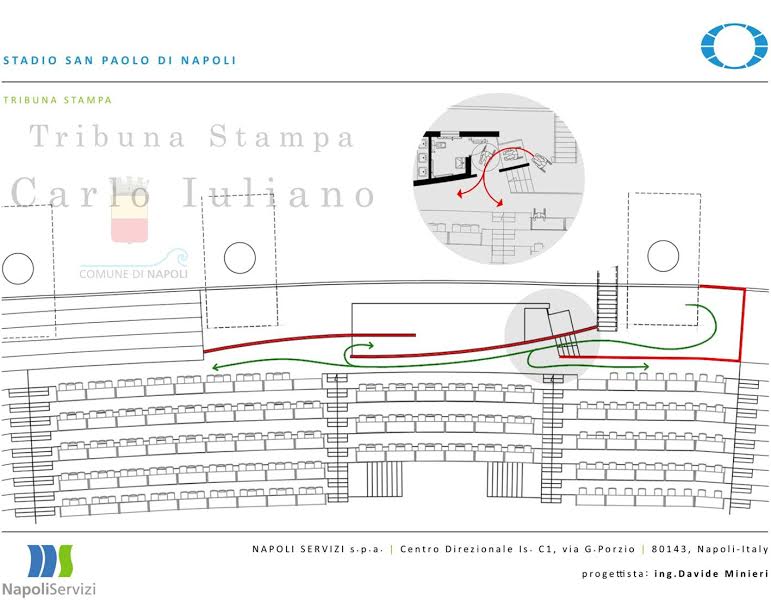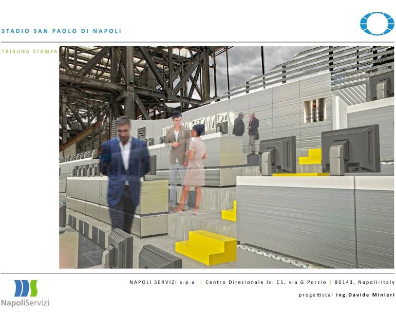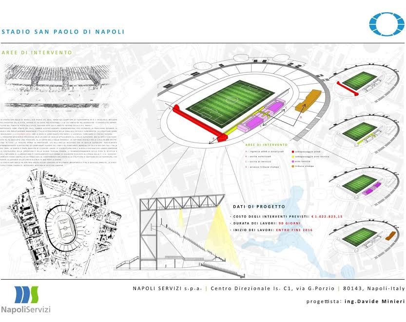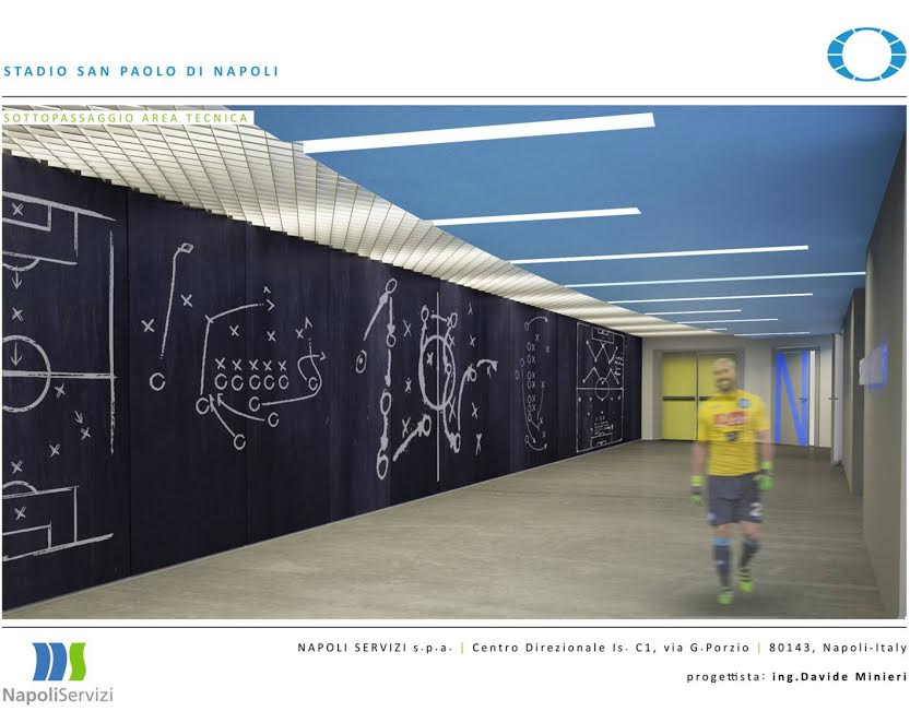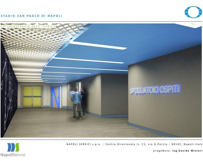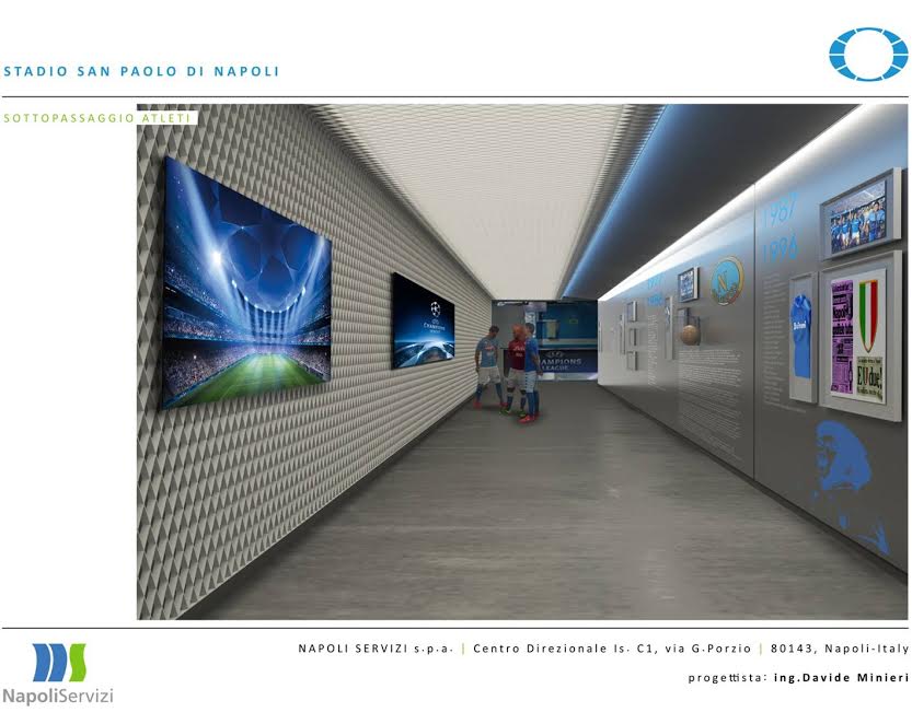 Questa mattina a Palazzo San Giacomo, in seno alla conferenza stampa indetta dal Comune di Napoli, è stato svelato il crono-programma dei lavori di ristrutturazione del San Paolo: il sindaco De Magistris e l’assessore Borriello hanno mostrato anche alcuni pannelli col risultato finale dei lavori. Importanti novità per gli spogliatoi, l’accoglienza delle squadre, e soprattutto il sottopassaggio che porta al terreno di gioco. Anche la tribuna stampa “Carlo Iuliano” avrà un volto nuovo.