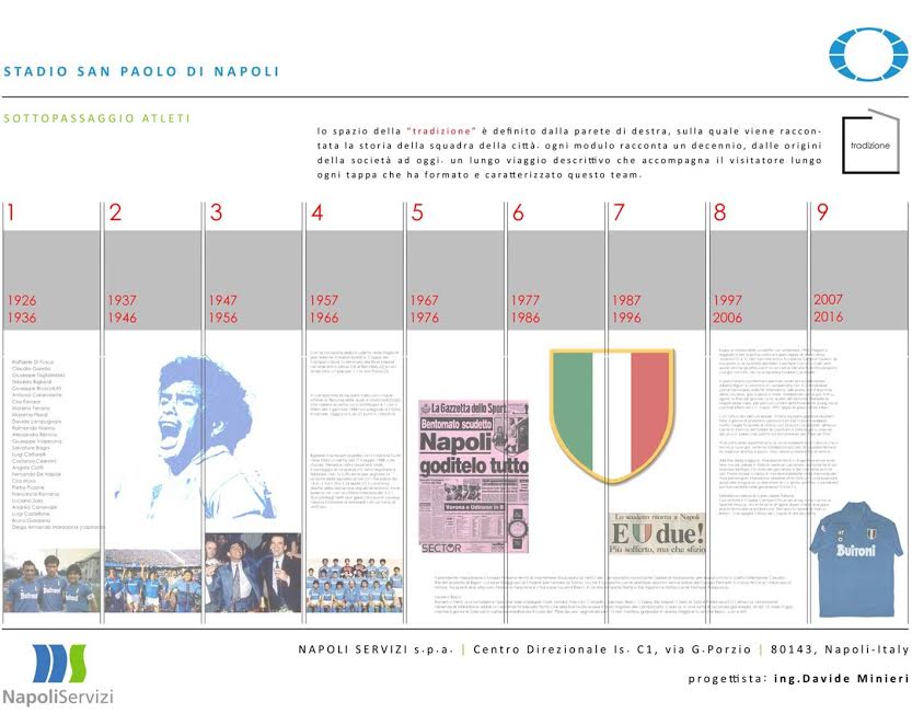 Nel corridoio fino agli scalini infatti ci sarà inoltre un piccolo museo con le immagini degli scudetti e di Diego. Di seguito la fotogallery: