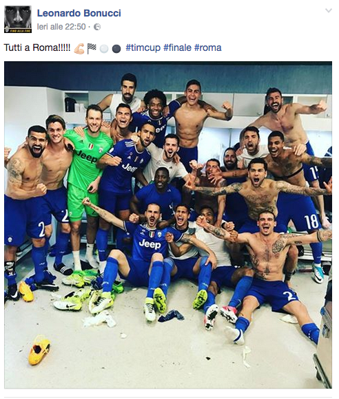 La Juventus non ha vinto contro il Napoli, ma ha comunque passato il turno aggiudicandosi la finale di Coppa Italia contro la Roma. Leonardo Bonucci, dopo il match, ha pubblicato una foto di tutta la squadra che esulta negli spogliatoi. Dall’immagine è possibile notare la gioia “composta” di Higuain, quasi come se la vittoria non gli importasse.