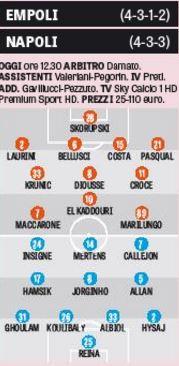 GRAFICO FORMAZIONI – Empoli-Napoli, Sarri lancia Koulibaly. Azzurri al completo