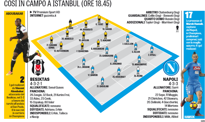 E si passa alle note dolenti: Gabbiadini e Insigne. «Manolo è a disposizione, abbiamo una soluzione diversa per l’attacco. La settimana scorsa senza lui e Milik sono stato costretto a far spendere molto a qualche giocatore. Per noi è un rientro importante. Insigne? Se devo dargli una punizione gli do uno scappellotto, e la società se vuole lo multa. Ma lasciarlo fuori per vendetta personale non fa per me. La scelta della formazione sarà sempre per il bene della squadra». L’importante sarà indovinarla.