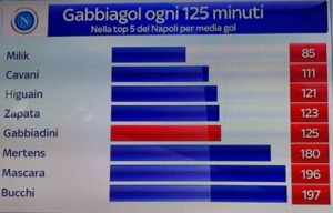Stando a quanto riferito da Francesco Modugno per Sky Sport 24 Gabbiadini è uno dei migliori realizzatori del Napoli. L’attaccante di Calcinate, infatti, ha uno score importante di un gol ogni 125 minuti .
