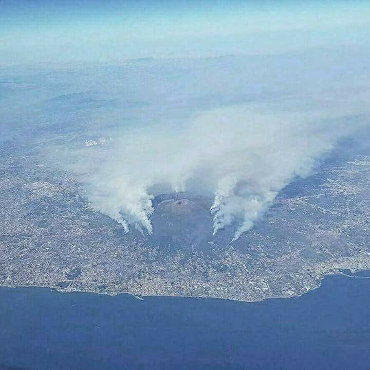 Nonostante l’attività di soccorso dei vigili del fuoco e dei Canadair, la situazione è ancora critica. Ormai è circa una settimana che il vulcano partenopeo è avvolto dalle fiamme. Una foto dall’alto rende molto bene l’idea di un Vesuvio che sembra vittima di bombardamenti.