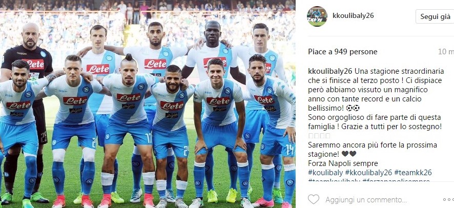 Kalidou Koulibaly ha commentato così la stagione del Napoli sul suo profilo Facebook: “Una stagione straordinaria che finisce al terzo posto! Ci dispiace, però abbiamo vissuto un magnifico anno con tanti record e un calcio bellissimo!