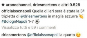 Sul profilo Instagram ufficiale della SSC Napoli la Società da la giusta visibilità a Dries Mertens autore di una tripletta ieri sera. Clamorosa, però, la gaffe della Società in quanto non si tratta della terza come scritto nel post ma della quarta.