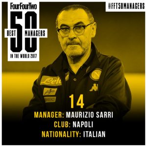 Stando alla rivista calcistica inglese Four Four Two, Maurizio Sarri, allenatore del Napoli, si è posizionato al 14esimo posto tra i migliori 50 allenatori al mondo.