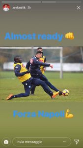Lo ha fatto capire il polacco in una delle sue ultime story su Instagram, in cui ha pubblicato una foto a Castel Volturno, mentre si allena coi compagni.