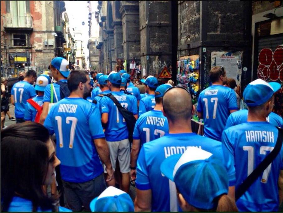 Un gruppo di turisti slovacchi in giro per Napoli… con le maglie di Hamsik (foto da Instagram). C’è un’immagine che ha fatto il giro della Rete: alla vigilia di Napoli-Benevento, un gruppo di turisti slovacchi si è presentato in città con la maglia di Marek Hamsik. Una bella forma di vicinanza per il capitano azzurro, protagonista di un inizio di campionato ancora sotto i suoi standard. In un normale pomeriggio di settembre, un gruppo di turisti slovacchi arrivato per visitare Napoli, si è fatto subito notare da tanti cittadini. Il motivo? Erano tutti vestiti con la maglia del capitano. E anche se non avevano la cresta, il numero 17 in evidenza sulla schiena, non li ha fatti passare inosservati. Il giorno dopo la notizia, che ha fatto il giro del web, lo stesso Hamsik ha pubblicato quella foto che ha destato meraviglia e ironie ringraziando tutti. Chissà se questa ulteriore forma di attaccamento da parte dei tifosi del suo Paese, possa tirar su il capitano del Napoli, protagonista di un inizio di campionato sotto i suoi standard. (SkySport)