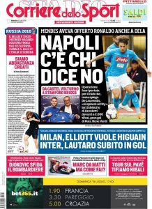 PRIMA PAGINA CORRIERE – “C’è chi dice no”, Mendes aveva offerto Ronaldo a De Laurentiis!