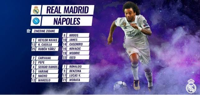 Navas, Casilla, Yanez, Carvajal, Pepe, Ramos, Varane, Nacho, Marcelo, Kroos, James, Casemiro, Kovavic, Modric, Isco, Ronaldo, Benzema, Lucas V., Morata.