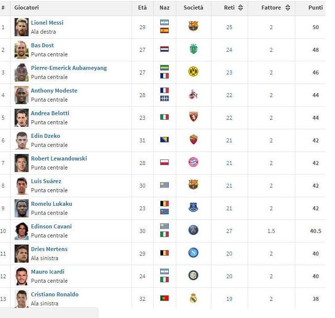 Scarpa d’oro, Mertens stacca Ronaldo e Higuain! Dries ora punta Cavani. La classifica
