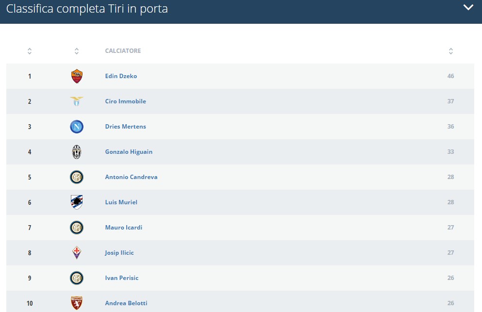 Ecco la classifica proposta dalla Lega di Serie A (Top 10)