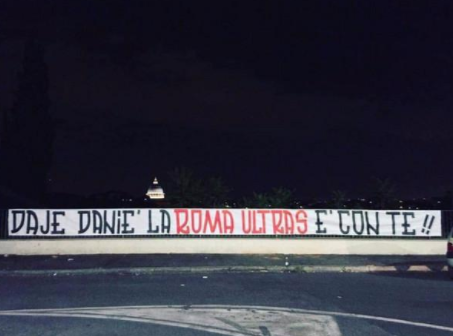 Dopo la riduzione di pena per Daniele De Santis (da 26 a 16 anni, ndr), accusato di aver ucciso Ciro Esposito, a Roma, per la precisione a Via Piccolomini, è apparso un vergognoso striscione di solidarietà: “Daje Daniè. La Roma ultras è con te”. Di seguito la foto pubblicata dal portale Laroma24.it.